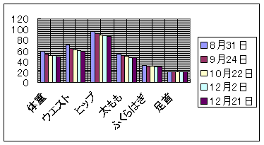 | 体重 | 59.36 | 54.18 | 51.7 | 50.92 | 49.26 |